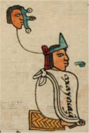 “Tehuantepec, donde habían muerto y tratado muy mal a los mercaderes y mayordomos que por allí recogían el tributo… Fue Axayácatl en persona a restaurar esta provincia… armándose a su modo con una espada y una rodela en la mano, se puso delante de su ejército…Él, fingiendo que huía, le fue siguiendo esta multitud hasta un lugar donde tenía escondidos muchos soldados cubiertos con paja, los cuales salieron de improviso de entre la hierba y haciendo una media luna les cogieron las espaldas. Entonces el rey revolvió con los suyos por la otra parte, y cogiendo en medio a sus enemigos, hicieron allí grandísima matanza. Tomaron bastantes cautivos para el sacrificio de su coronación…No paró hasta Huatusco, que es puerto de la costa del mar del sur, que hasta allí extendió su reino.” (Códice Ramírez, p. 154.)